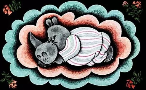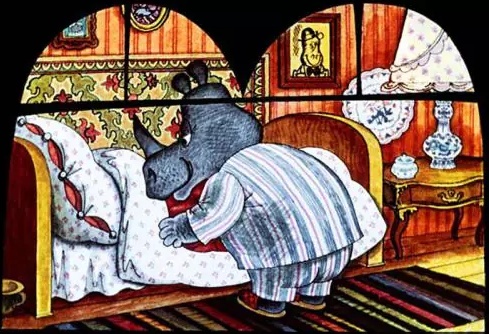 А так как он был очень большой и толстый, то и падал с постели очень громко — бух!!! И все, кто жил по соседству, были недовольны и жаловались, что он слишком шумный и беспокойный носорог.