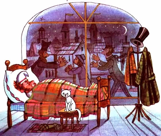 Они попрощались, и Сьюзи пошла домой. Уже стемнело, но фонарщик Чарли почему-то не зажигал огней, и прохожие не знали толком, куда им идти.
