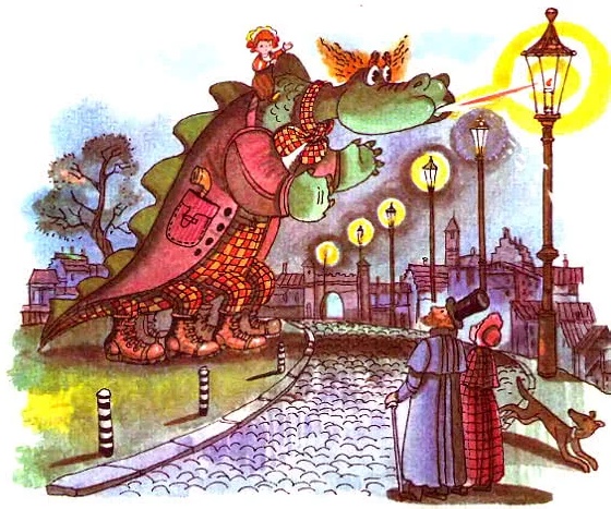 Жители города очень обрадовались. С тех пор они совсем перестали бояться дракона. И каждый год, когда фонарщик Чарли уезжал в отпуск, они звали Комодо зажигать на улицах города фонари.