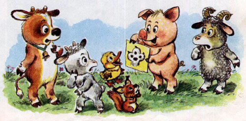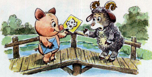 — К сожалению, — улыбнулся хитрый поросёнок, — теперь это делать нельзя. Разве ты не знаешь, кто я? Читай! — Тут поросёнок подал козлёнку письмо, и тот прочитал: