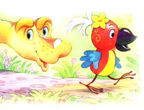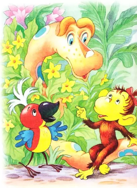 — Попугай! — закричала мартышка. — Куда мы идём? Туда?