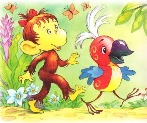 «Интересно, куда это мы идём?» — подумала мартышка, уже шагая рядом с попугаем.