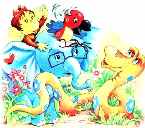 Попугай внимательно посмотрел на слонёнка, потом на удава, потом на мартышку и спросил всех троих: