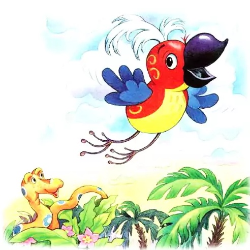 — Гнездо, оно далеко! — объяснил попугай. — Сначала я пойду туда, туда, туда, туда, туда. Потом там. Потом обратно, обратно, обратно, обратно. И приду через три дня. Счастливо оставаться!
