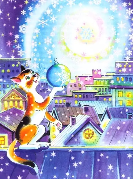 — Отпусти меня, пожалуйста, — зазвенел голубой шарик, — мне необходимо на улицу, иначе не будет метели новогодней, не будет веселья праздничного. Ведь ты слышала, что бабушка говорила. Кошка нахмурилась, стараясь вспомнить бабушкины слова.