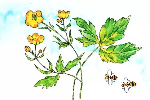 «Еще кое-что поместится»,— подумало Лето, тихонько встряхнув лукошко. Вдруг что-то сверкнуло и тут же погасло в тени старого орешника- Это солнечный лучик упал на блестящий лепесток желтого лютика, а потом тень старого дерева нечаянно укрыла цветок. «Это то, что нуж-ио»,— обрадовалось Лето. Горсточка густой зеленой тени, чистая искорка солнца, золотистый цвет лютика — все, лукошко наполнилось доверху.
